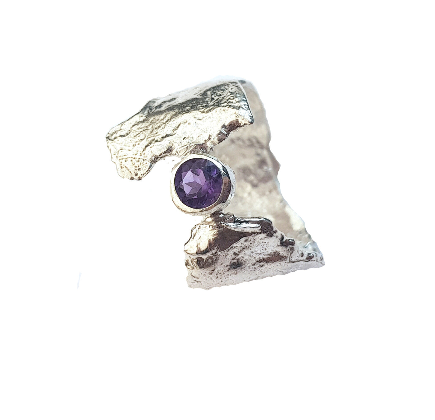 A sterling silver Faerie Tale Ring, set with a beautiful 4mm faceted round Amethyst