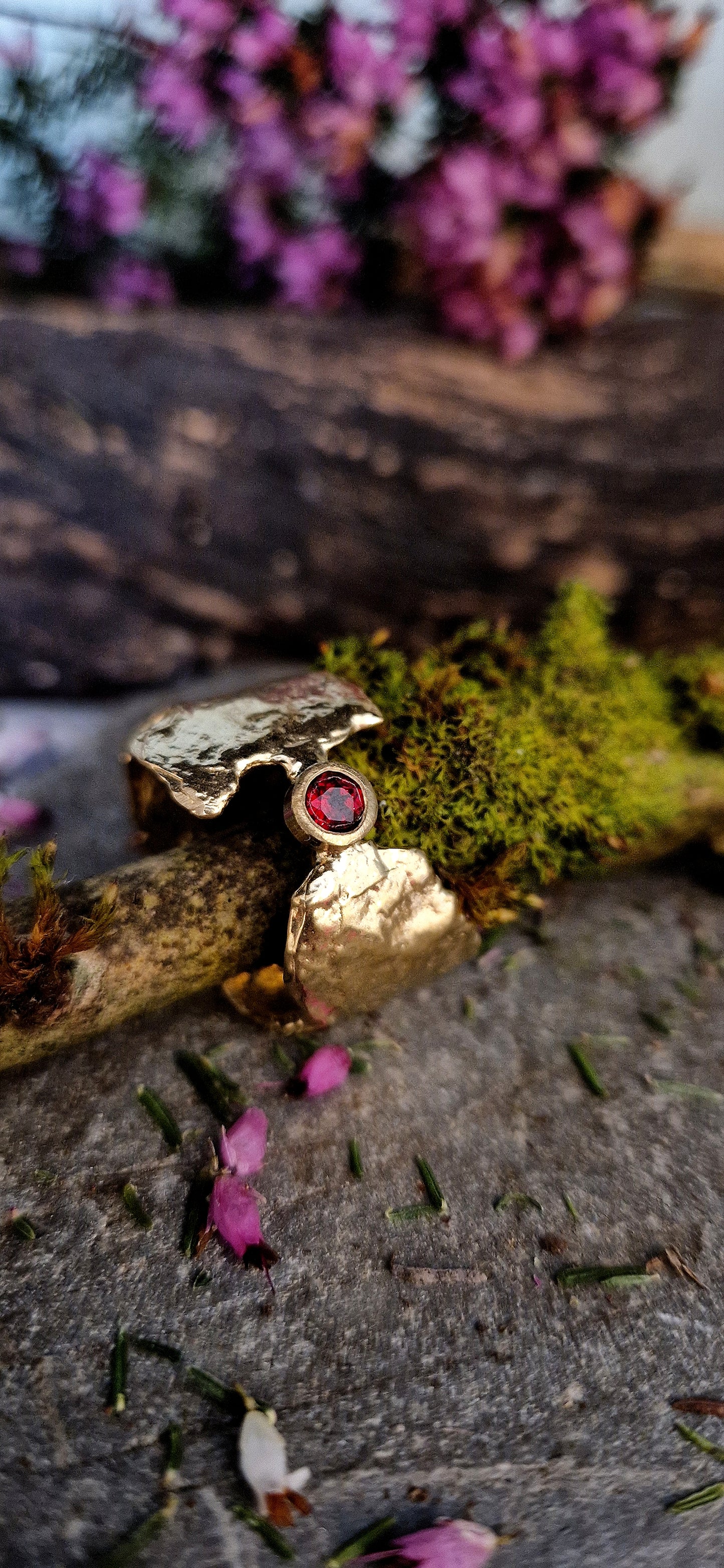 A stunning Faerie Tale Ring,18ct yellow gold plated, set with a beautiful Garnet gemstone. Also available in 9ct Solid Yellow Gold - message to enquire.