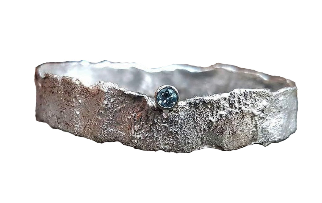 A beautful enchanting Faerie Tale Bangle in sterling silver, with stunning texture, set with a 4mm Blue Topaz Gem.  Approx 1.2cm width.